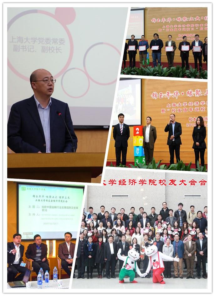 金秋佳节,菊花飘香。2015年11月21日,上海大学经济学院在宝山校区图书馆报告厅举行了主题为“锦玉年华·缘聚上大·续梦未来”的校友返校活动。这是经济学院校友分会自2015年6月27日正式成立后的第一次返校聚会。各界校友及在校学生三百余人齐聚一堂,上海大学党委副书记、副校长徐旭,上海大学对外联络处处长许瑞、副处长谭婷,经济学院院长沈瑶、党委书记陆甦颖、常务副院长聂永有、副书记贺利以及许多关注校友工作的经济学院教师们出席了这次活动。