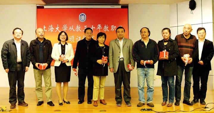 邀请我校从教三十年的教职工欢聚一堂,共同庆祝和纪念这个特殊的日子,是校工会的一项光荣传统,也是我校师德师风建设的一个重要载体。2015年,我校有155位教职工从教已满30年。校党委副书记、纪委书记夏小和,党委组织部部长王军华,党委宣传部部长李坚,人事处处长朱明原,校工会常务副主席、妇委会常务副主任顾红,校工会副主席翁新楚、吕晓军,校妇委会副主任康丽英等领导到会祝贺并为他们颁发了证书。