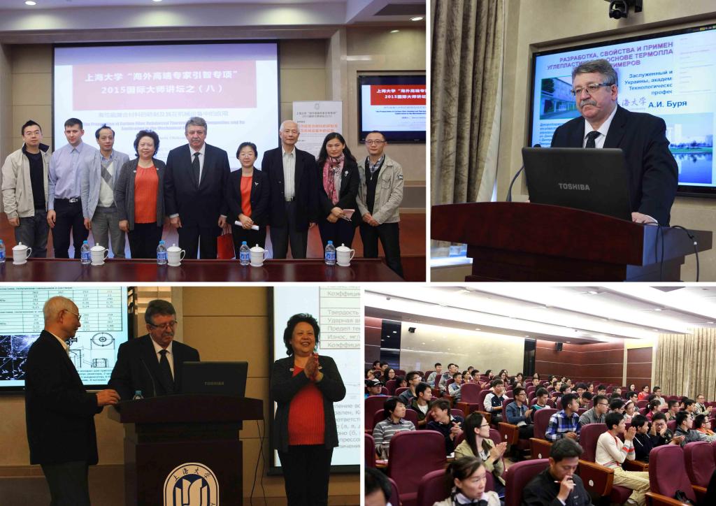 2015年10月28日上午9点半,上海大学“海外高端专家引智专项”2015国际大师讲坛之(八)于宝山校区乐乎新楼学海厅成功举行。来自乌克兰工程院的BURIA OLEKSANDR院士为在座师生作了题为“高性能复合材料的研制及其在机械设备中的应用”的精彩学术报告。演讲由复合材料中心副主任李红副研究员主持,国际事务处倪兰副处长致开幕辞,复合材料中心常务副主任任慕苏研究员、材料学院副院长尹静波教授、材料学院高分子系副系主任胡和丰副教授、纳米科学与技术研究中心杭建忠教授、机电工程与自动化学院机械自动化系王文教授等老师和近百位上大学子出席本次学术讲座。