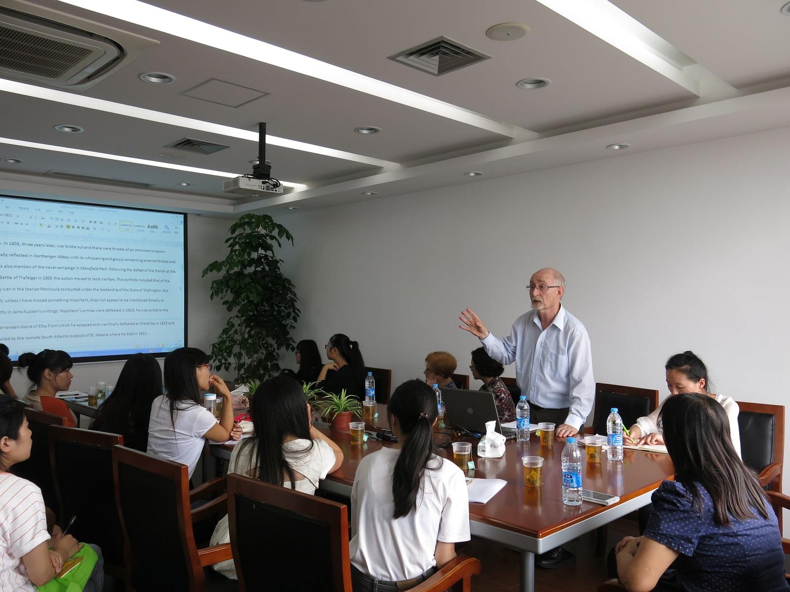 9月25日下午1点到3点,美国北伊利诺伊大学杰出教授、英国维多利亚文学专家、著名的莎士比亚研究者威廉·贝克(William Baker)教授应上海大学外国语学院邀请,在校本部C楼512室作了“简·奥斯丁:我们为什么还要读她?”的学术讲座。此次讲座由外国语学院朱洁副教授主持,外国语学院院长周平教授、相关专业教师、外院研究生以及其他院系同学等50余人聆听了此次讲座。