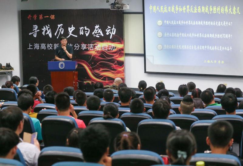 在隆重纪念中国人民抗日战争暨世界反法西斯战争胜利70周年之际,市教卫工作党委、市教委与新华社上海分社联合推出以抗战历史、抗战精神教育为核心的“开学第一课”系列活动。8月31日,作为今年上海最早开学的大学之一,我校两百余名本科生迎来了一堂别开生面的思想政治教育“第一课”,也以此拉开了“开学第一课”系列活动和“‘寻找历史的感动’上海高校新媒体分享活动”的序幕。名师专家联合教学