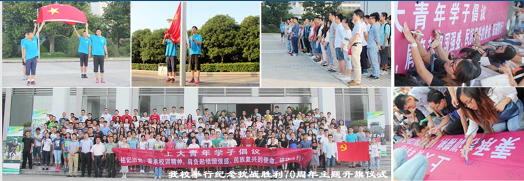 9月3日上午,“铭记历史 展望未来”上海大学纪念抗战胜利七十周年主题升旗仪式隆重举行。校党委宣传部部长李坚、武装部部长兼保卫处处长沈龙骥、校学工办主任胡大伟、校团委书记兼学工办副主任许烁以及来自各学院的近150名师生代表参加了此次仪式。