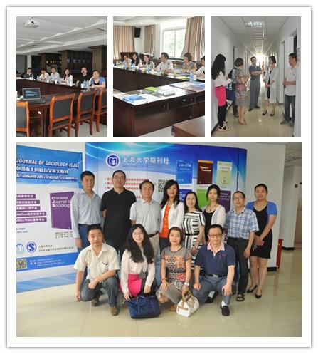 与会人员共同观看了上海大学期刊社介绍短片《聚·变》,之后秦钠社长向客人简要介绍了期刊社历史和现状、近年来的工作举措及成效。叶娟丽副主编等对期刊社集约化、专业化、信息化、数字化、国际化的发展进程表示高度赞赏。双方围绕期刊社管理体制和运行机制、人文社会科学学报信息化建设举措、人文社会科学精品学术期刊建设方案等话题进行研讨。座谈会后,来访客人还参观了期刊社各编辑部,并合影留念。