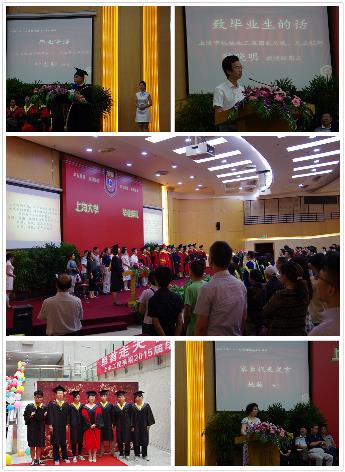 7月5日上午,上海大学土木工程系2015届毕业典礼在宝山校区图书馆报告厅隆重举行。校党委常委、副校长丛玉豪教授,土木工程系学科带头人,上海大学原副校长叶志明教授,上海市机械施工集团副总裁、总工程师陈晓明教授级高工及土木工程系全体教师、学生家长代表、2014级全体学生应邀共同出席了本次典礼。