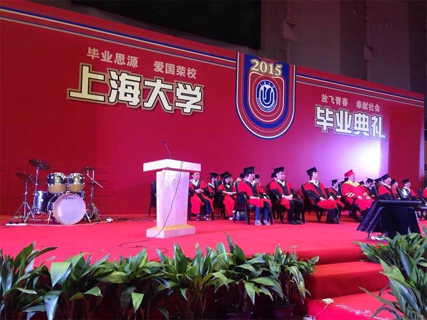 2015年7月4日上午,上海大学影视艺术技术学院2015届本科生毕业典礼暨学位授予仪式在体育馆隆重举行。上海大学党委副书记、副校长徐旭,影视艺术技术学院党委书记王晴川、常务副院长何小青及各系领导、教授代表等出席毕业典礼,部分毕业生家长应邀出席。