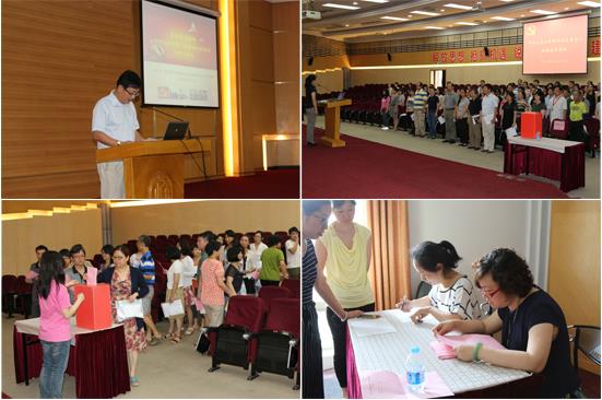 中共上海大学图书馆直属总支委员会于2015年6月25日上午在校本部图书馆二楼讲堂召开换届选举大会,组织部张洁副部长和施恩望老师代表校党委组织部出席并指导,会议由党总支副书记张庆兰主持。 党总支书记刘日宇在大会向图书馆、档案馆全体党员汇报上一届党总支工作,从过去三年的工作回顾和主要经验、存在的主要问题、今后奋斗的目标与努力的方向三个方面作了题为《抓发展机遇创服务品牌——为深化图书馆、档案馆内涵建设而努力奋斗》的工作报告;报告着重以“围绕中心抓党建,彰显党建工作基础作用”、“抓好党建促中心,开创中心工作多彩局面”两个角度,抓住“服务”这个两馆中心工作的关键词,就两馆上一届党总支的工作做了总结。