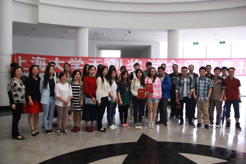 接着,颁奖嘉宾上台宣布2015年春季上海大学天创奖学金颁奖暨天创杯竞赛的获奖名单。欢快的音乐声中,获奖同学们依次上台领取证书及奖品。在颁奖嘉宾对学子们所获荣誉表示祝贺的同时,获奖同学也表达了对天创集团和学院提供的学科竞赛平台及奖学金设立的衷心感谢。