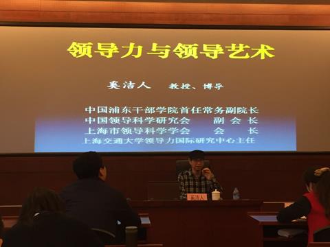 4月30日下午1点中国浦东干部学院首任常务副院长、中国领导科学研究会副会长、上海市领导科学学会会长奚洁人教授在乐乎新楼思源厅为2015年上海大学院(系)分管副书记培训班带来了一场《领导力和领导艺术》的精彩报告。报告开始前上海大学党委副书记、副校长徐旭亲切会见了奚教授,对奚教授的到来表示热烈的欢迎。