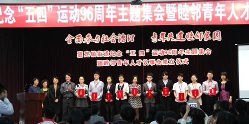 活动现场,成立了街道睦邻青年人才议事会,并为主席团、顾问团成员颁发了聘书。悉尼工商学院理论实践部深情演绎情景诗朗诵《十年之约》,此部门也作为街道2014年度十佳优秀青年公益团队之一接受了表彰,卫静芬书记等领导为十佳优秀青年公益团队以及荣获国家级、市级、区级荣誉的青年中心表彰授牌。