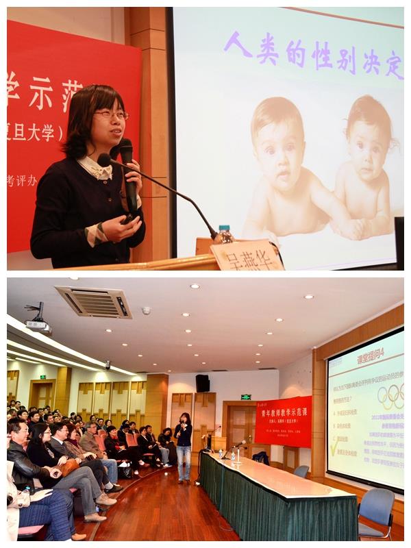 4月17日下午,由校工会、校妇委会、教务处、考评办和人事处联合组织的青年教师示范课观摩及交流活动在校本部J103举行。活动邀请了荣获第二届全国高校青年教师教学竞赛一等奖、首届上海高校青年教师教学竞赛自然科学基础学科类一等奖,上海市“五一”劳动奖章获得者,复旦大学生命科学学院吴燕华副教授为我校青年教师做课堂教学示范课。校党委常委、副校长丛玉豪,校工会、校妇委会、教务处和人事处相关负责人,各学院教学院长、教学委员会专家、青年骨干教师、新进青年教师助教、学生代表等近300人参与观摩。