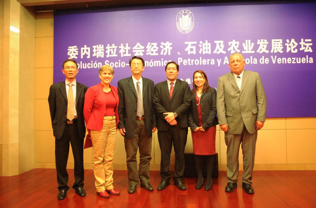 4月3日下午,由上海大学国际事务处及委内瑞拉驻华使馆联合举办的-委内瑞拉社会经济、石油及农业发展论坛在我校乐乎新楼学海厅隆重举行。委内瑞拉玻利瓦尔共和国驻华使领馆阿尔伯特·巴斯达多公使衔参赞、玛利亚·德·洛斯安赫雷斯参赞、安赫尔·雷阿尔参赞及莱斯贝斯·贝里奥斯·莱昂总领事一行六人代表团为听众们带来了精彩的主题讲座。国际事务处万旺根处长,研究生院郭长刚常务副院长,MBA中心政府关系顾问Jorge Hidalgo先生、中心项目办公室副首席项目总监邢洁婷女士、中心办公室王慧女士及近百名全校师生共同参与了本次论坛。