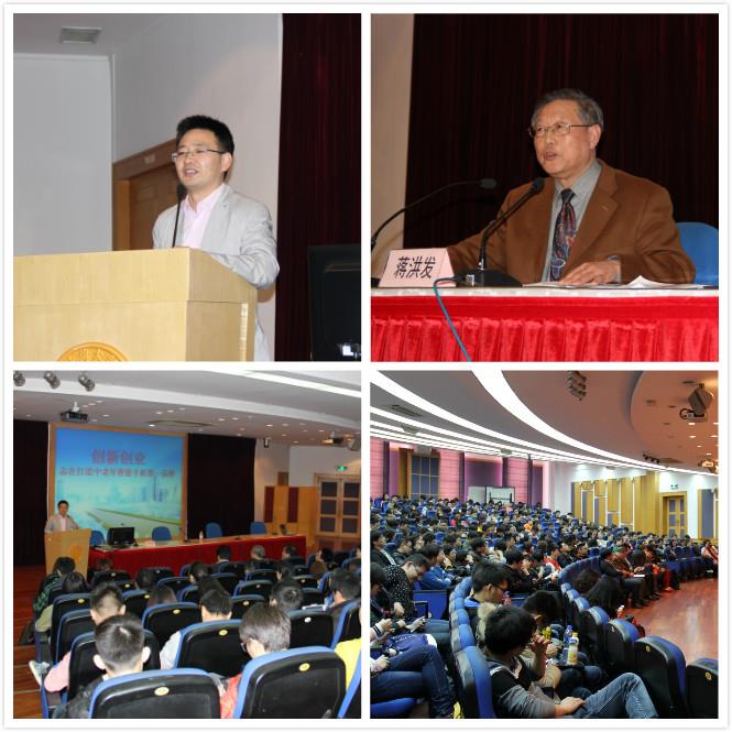 随后,蒋洪发老师对赵玉涛总裁的报告进行点评。蒋老师发言时,所有同学都被他的激情所感染,自觉的鼓起掌来,他鼓励同学们放飞青春梦想,谱写人生华章,就中国梦的话题引入,同时也告诉同学如果想做创业者,一定要具备三个有,“有勇气,有胸怀,有理想”,要专一、专心、专注,志存高远, 把握当下,永不气馁等道理,相当精彩。
