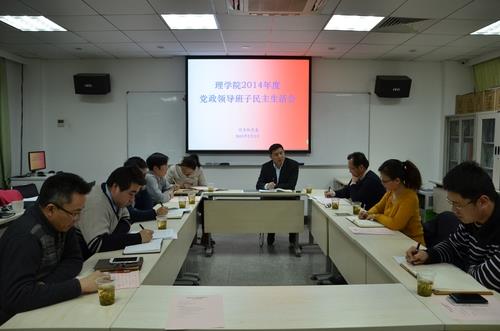 2015年2月2日下午,理学院党政领导班子召开以“严格党内生活、严守党的纪律,深化作风建设”为主题的民主生活会,班子成员翁培奋、盛万成、方建慧、胡国辉、陈玺、王东媛、刘亮共7人参加会议,副校长丛玉豪出席会议,党校尚彩伶同志列席会议。会议由学院党委书记盛万成主持。