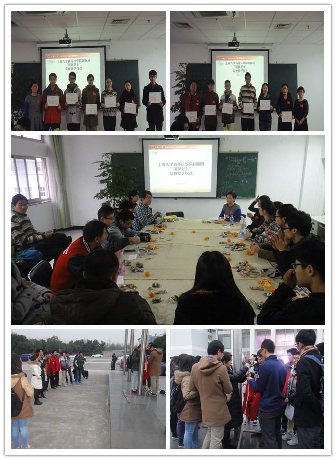 钱伟长学院自2007年开始承担上海大学国旗升降的神圣使命。7年以来除寒暑假外的每天,同学们轮值负责行政楼前国旗升降。身为上海大学钱伟长学院国旗班成员,每一个同学都感到万分光荣,同时也清楚地知道这是一项光荣神圣的使命。国旗代表的是整个中华名族的灵魂,国旗代表着庄严,肃穆,作为国旗班的同学,钱伟长学院同学将一如既往,怀着对国旗的一份敬畏,做好国旗班这份工作。