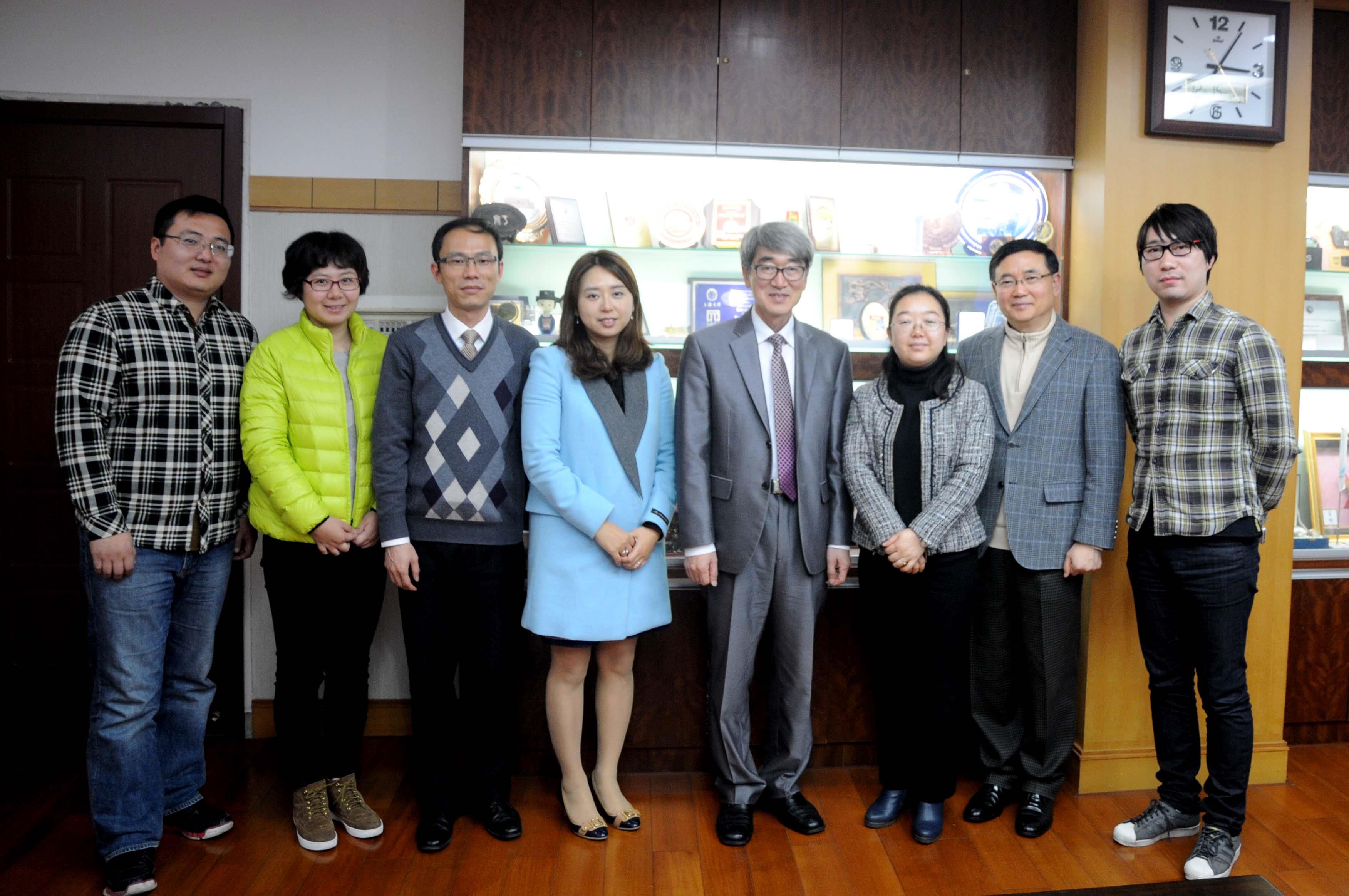12月15日下午,韩国亚洲大学国际事务处主任HYUKPYO KWON先生一行访问我校。陪同访问人员有韩国亚洲大学国际研究生院副主任JEONG YOUNG CHIO女士、黄甲善博士。上海大学国际事务处副处长倪兰女士率国际事务处金祺、刘伊,国际交流学院招生办公室主任黄浩、项目主管陈颢等于行政楼203会议室会见了来访贵客。双方进行了友好洽谈,互赠礼物和合影留念。