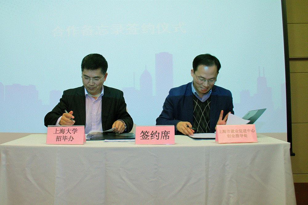 活动开始,首先由上海市人保局就业促进中心创业指导处杨永华处长和上海大学招生与毕业生就业工作办公室副主任傅新华分别致辞,并共同签署了《合作备忘录》,双方将在创业咨询、讲座、政策解读等方面达成合作,以增强大学生创业能力、帮助小微创业企业发展壮大。