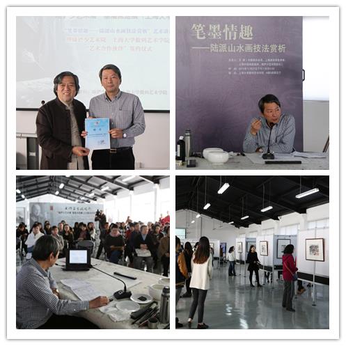 上海市嘉定区政协副主席、上海市嘉定文联主席、陆俨少艺术院院长王漪,上海大学数码艺术学院院长仲星明出席本次活动,并共同签署“艺术合作伙伴”共建协议书。在以“中国画知识以及陆派山水画特征”为主题的讲座中,王漪院长以画作解析为线索,以生动的语言,翔实的资料,系统解读了中国画的理念、功能、技法、种类,更生动讲述了陆俨少大师经数十年历练揣摩,取各方之长,弃百家之短,据己秉性气质,创造令世人瞩目的“陆家山水”的艺术全貌,成为当代中国山水画坛卓越丰碑的艺术造诣。