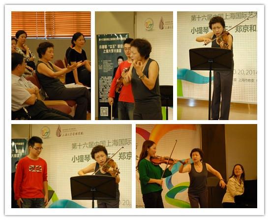 2014年10月20日上午9:30,作为第十六届中国上海国际艺术节校园行活动之一,世界著名小提琴家郑京和女士来到上海大学音乐学院二楼音乐厅,为上海大学的师生们上了一堂难忘的小提琴大师课。本次活动由上海市教卫工作党委、上海市教委、中国上海国际艺术节中心主办,由上海大学音乐学院承办。郑京和女士是来自韩国的世界著名小提琴家,是继努娃、韩黛儿之后世界上最著名的女性小提琴家。她也是70年代最活跃的音乐人物之一,是当时唯一能与小提琴演奏大师帕尔曼平起平坐的小提琴家,因此也被誉为小提琴演奏家中的“女王”。