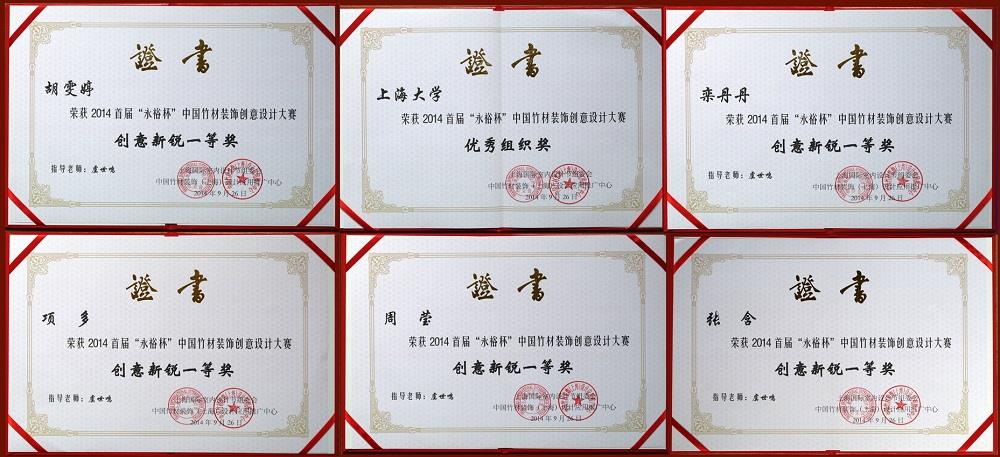 2014年9月26日,“2014年国际室内设计节”贵都国际大饭店帝皇厅召开的“中国酒店装饰与竹材装饰设计应用推介峰会”上,进行中国竹材装饰创意设计大赛“永裕杯”颁奖活动,我校机自学院工业设计专业学生5件作品,均获得“创意新锐一等奖”。