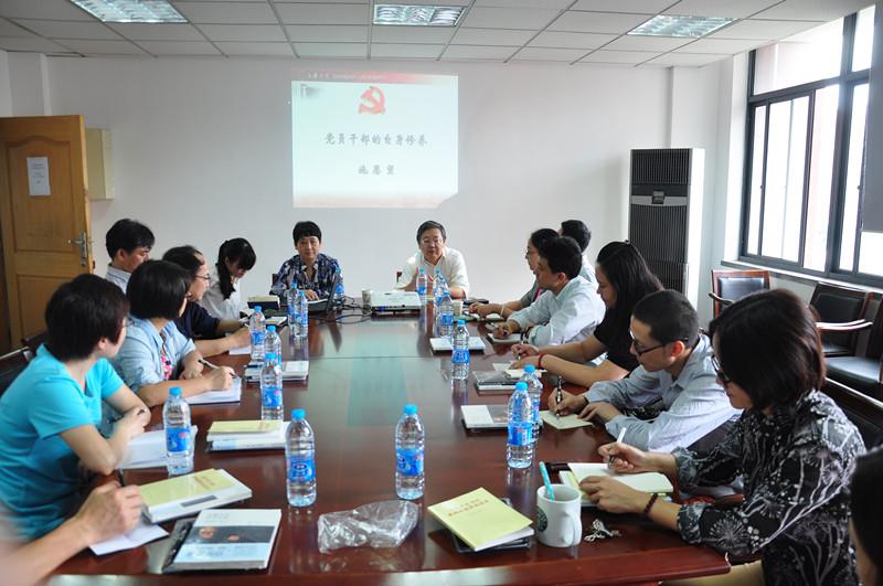 随后,上海大学原党校常务副校长、原组织部副部长施恩望做了题为《党员干部的自身修养》报告。施老师结合《党章》以及习近平总书记关于党员干部党性修养的重要论述,从理论和具体案例,鼓励支部书记要按照“对照、反思、检查、完善、提高”的过程,不断提升自身修养。