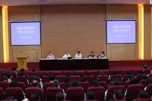 2014年7月11日上午,上海大学图书馆在校本部图书馆讲堂举行全馆职工工作大会,上海大学副校长、图书馆馆长叶志明教授出席并作专题讲话,会议由图书馆直属党总支副书记张庆兰同志主持。