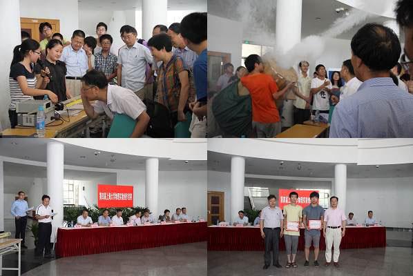 第四届上海大学物理实验创作竞赛于7月8日在新校区J楼一楼大厅隆重举办。来自理学、钱伟长、通信、社区、机自、数码等学院学生报名参加了本次竞赛。竞赛由理学院物理系教学主任姜颖主持,物理系系主任赵新洛应邀出席并全程参与。来自复旦大学、同济大学、华东师范大学、上海理工大学、上海大学的赵在忠教授、王祖源教授、毕志毅教授、刘廷禹教授、张金仓教授五位校内外专家现场观摩了实验作品,聆听同学们激情的讲解和趣味的实验演示,并仔细询问了同学们的创意来源和心得体会及作品的物理原理和技术路线,最后评选出了一等奖、二等奖、优胜奖和优秀创意奖,覃秉丰同学小组的“幼儿防护居家安全智能系统”作品和曹进律同学小组的“空气涡流环对撞和空气炮实验”作品荣获得了本次竞赛一等奖。