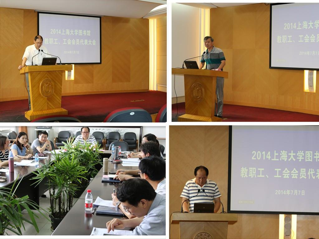 2014年7月7日,上海大学图书馆教职工、工会会员代表大会在校本部图书馆报告厅胜利召开,会议由图书馆分工会主席梁建主持。校工会常务副主席姜继平出席开幕式并致开幕辞,认为教代会是学校教职员工参与学校民主管理、行使民主权力、推进校务公开、馆务公开的重要形式和平台,希望图书馆分工会围绕图书馆中心工作,团结广大职工,推动图书馆科学发展。