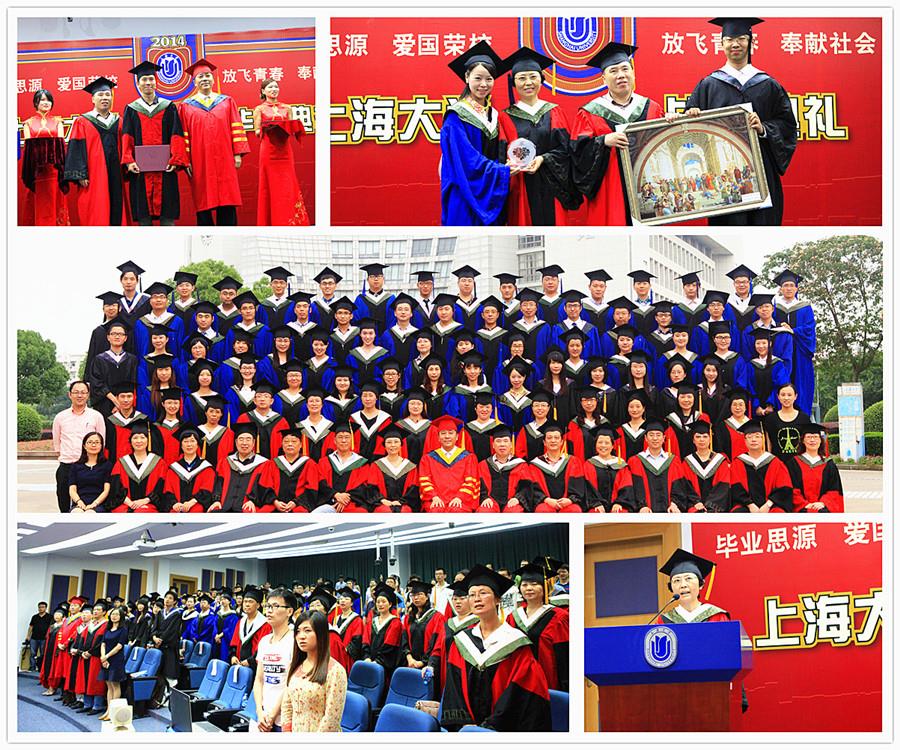 最后,在司仪史晓东同学的示意下,全场高歌气势恢宏的《上海大学校歌》。整场毕业典礼在“自强,自强,不息的自强”的校歌声中落下帷幕。典礼结束后,领导老师与所有毕业生们在J楼前以图书馆为背景留下了珍贵的合影。