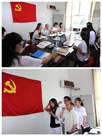 2014年6月23日上午9点,悉尼工商学院支教团队在江西省昌江区余家希望小学会议室召开“坚持理论学习,重温入党誓言”组织生活。带队老师姜晓庆主持会议,上海大学前文明办副主任沈启华、余家希望小学校长胡招龙以及支教团队党员和入党积极分子参与此次组织生活。