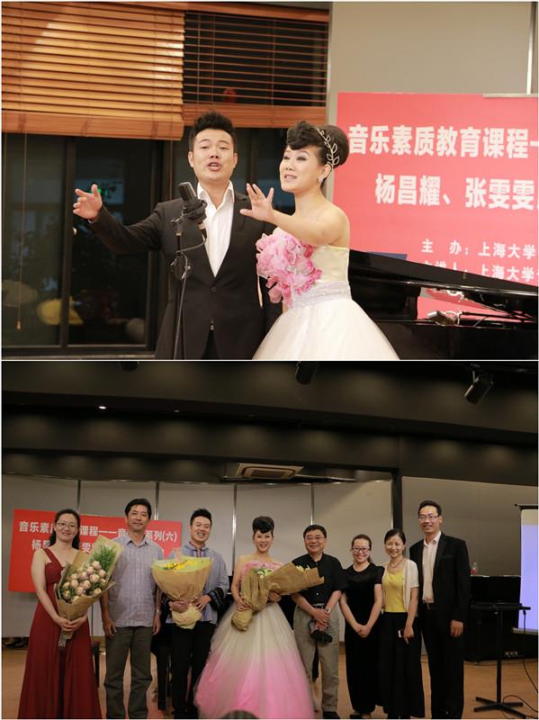 6月23日晚,由上海大学音乐学院主办的《音乐素质教育课程——音乐会系列(六):杨昌耀、张雯雯民歌专场音乐会》在上海大学音乐学院二楼综合排练厅成功举办。上海大学副校长、音乐学院院长叶志明、上海大学校长助理、音乐学院直属党总支书记李伟、上海大学音乐学院副院长、艺术总监夏小曹、音乐学院副院长狄其安、卿扬等领导以及各院系师生观看了音乐会。