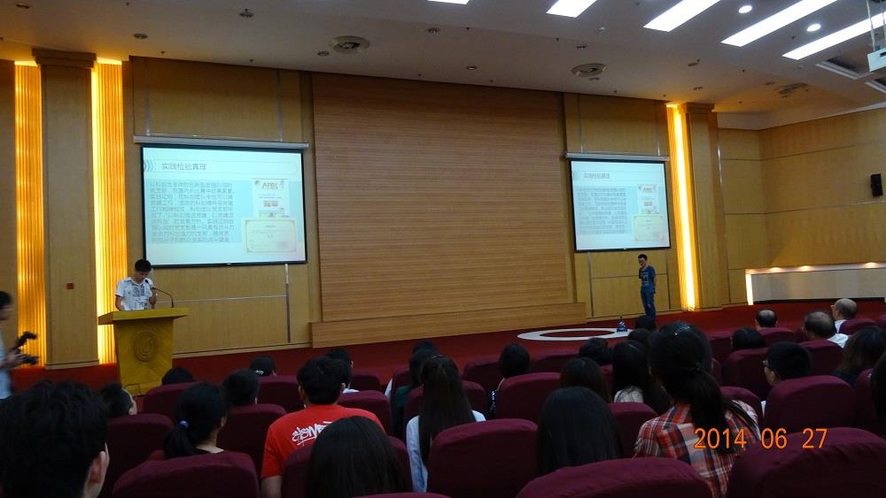 2014年6月27日(周五)下午13:30在图书馆报告厅举行学生党建“七一”表彰会,上海大学机自学院自强队临时党支部,作为全校24个优秀学生党支部的代表,在表彰会上自强队临时党支部书记陈永东同学对支部如何建在大学生科技创新团队最活跃的细胞上,进行了其风采展示。
