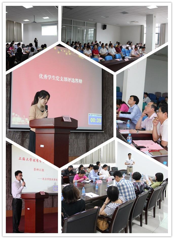 近日,候选人材料已在乐乎论坛、上大易班上进行展示和投票。为了进一步增强优秀学生党员、优秀学生党支部、优秀党支部书记的显示度,达到相互学习、交流提高的效果,2014年6月16日下午组织部、学工办联合开展了2013-2014年上海大学优秀学生党支部、优秀学生党支部书记评选答辩活动(其中优秀学生党员实行等额推荐,不进行答辩)。校党委宣传部部长陈志宏老师、党委组织部副部长曹为民老师、党委组织部副部长、团委书记胡大伟老师,其他相关部处领导、各院系学生工作副书记担任答辩评委,各学院学生党建工作负责老师、各候选支部、支部书记代表列席观摩了此次答辩。