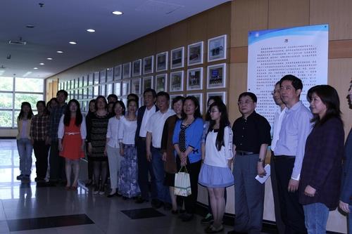 最后,副校长叶志明与校长助理李伟共同为“图书馆讲堂文化墙”揭幕,并和与会全体师生一起参观文化墙,通过一幅幅照片共同回顾上大发展过程中的点滴记忆。