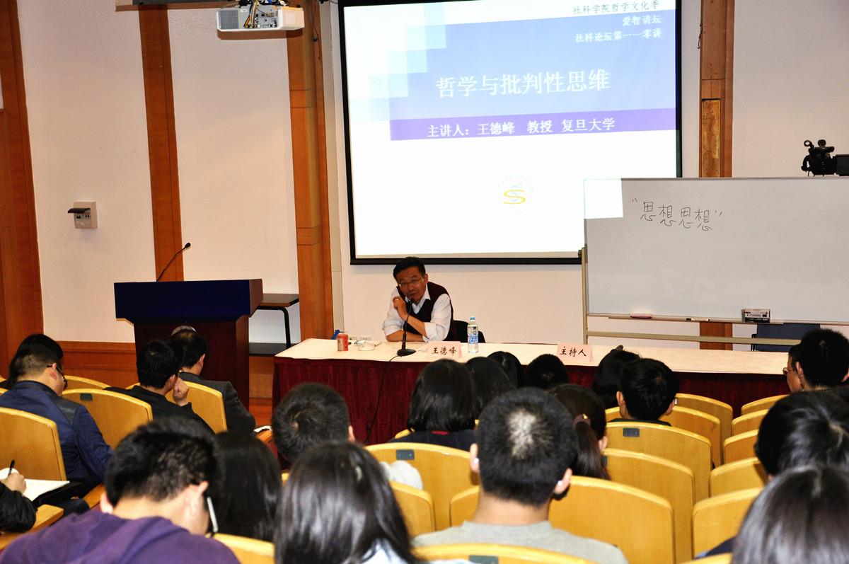 2014年5月4日下午13点30分,在上海大学宝山校区J201,复旦大学“哲学小王子”:王德峰教授,做客社科学院“爱智讲坛”系列哲学名家讲座、社科论坛第一一零讲,带来题为“哲学与批判性思维”的讲座。本场讲座由社科学院哲学系主任宁丽娜教授主持,社科学院副院长欧阳光明、李梁以及学院教师徐琴、刘小涛、吴立群、刘冰、陆耀峰等,上海大学各级各专业本科生、研究生前来聆听,全场几乎座无虚席。