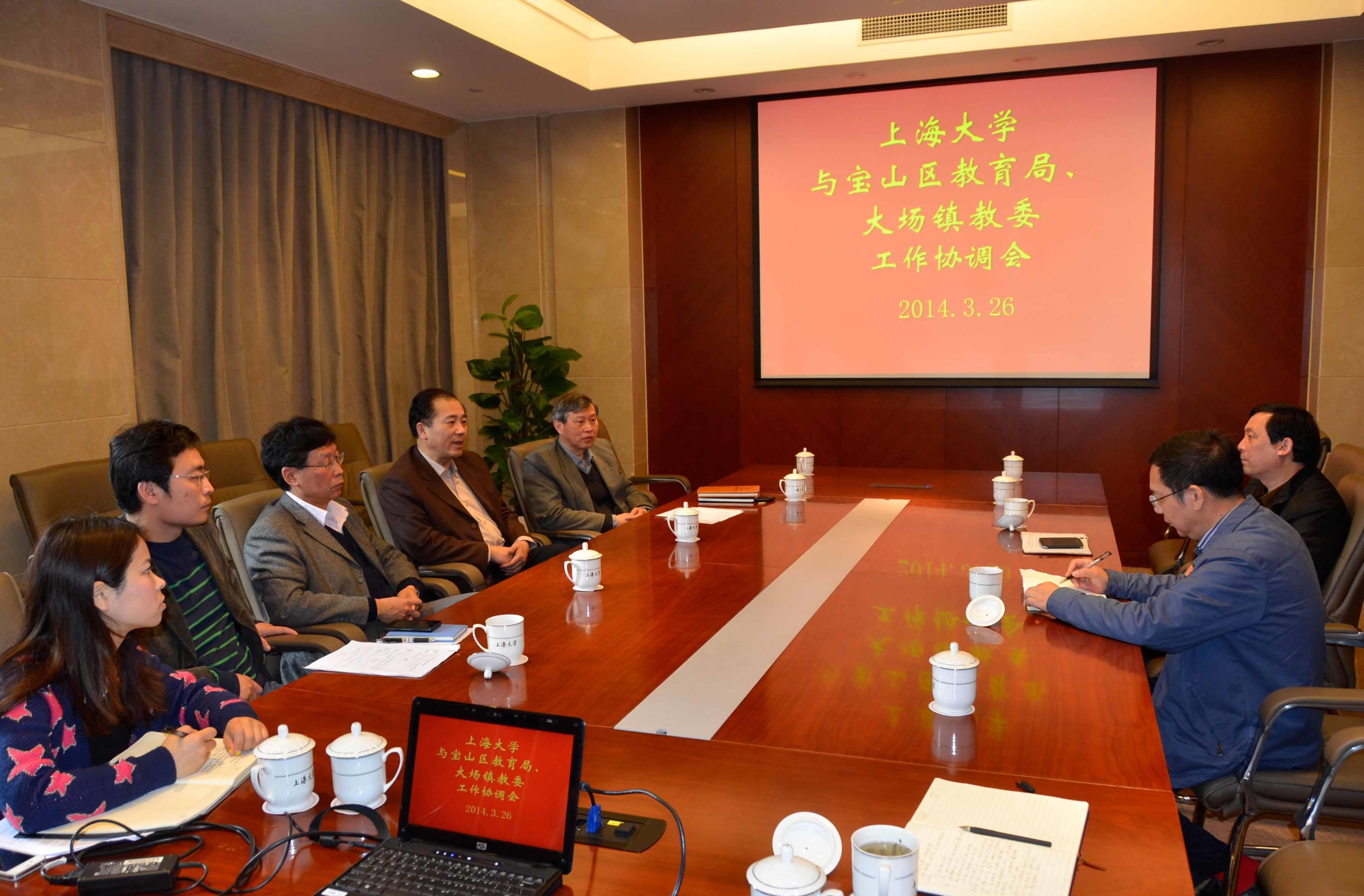 3月26日上午9点,上海大学与宝山区教育局、大场镇教委在校本部乐乎新楼海纳厅举行工作会谈。校党委副书记、纪委书记、校工会主席忻平,宝山区教育局副局长陆荣林,大场镇教委主任左忠明,校办副主任吴英俊,校本部基建总指挥、原校工会主席薛志良出席了会议。
