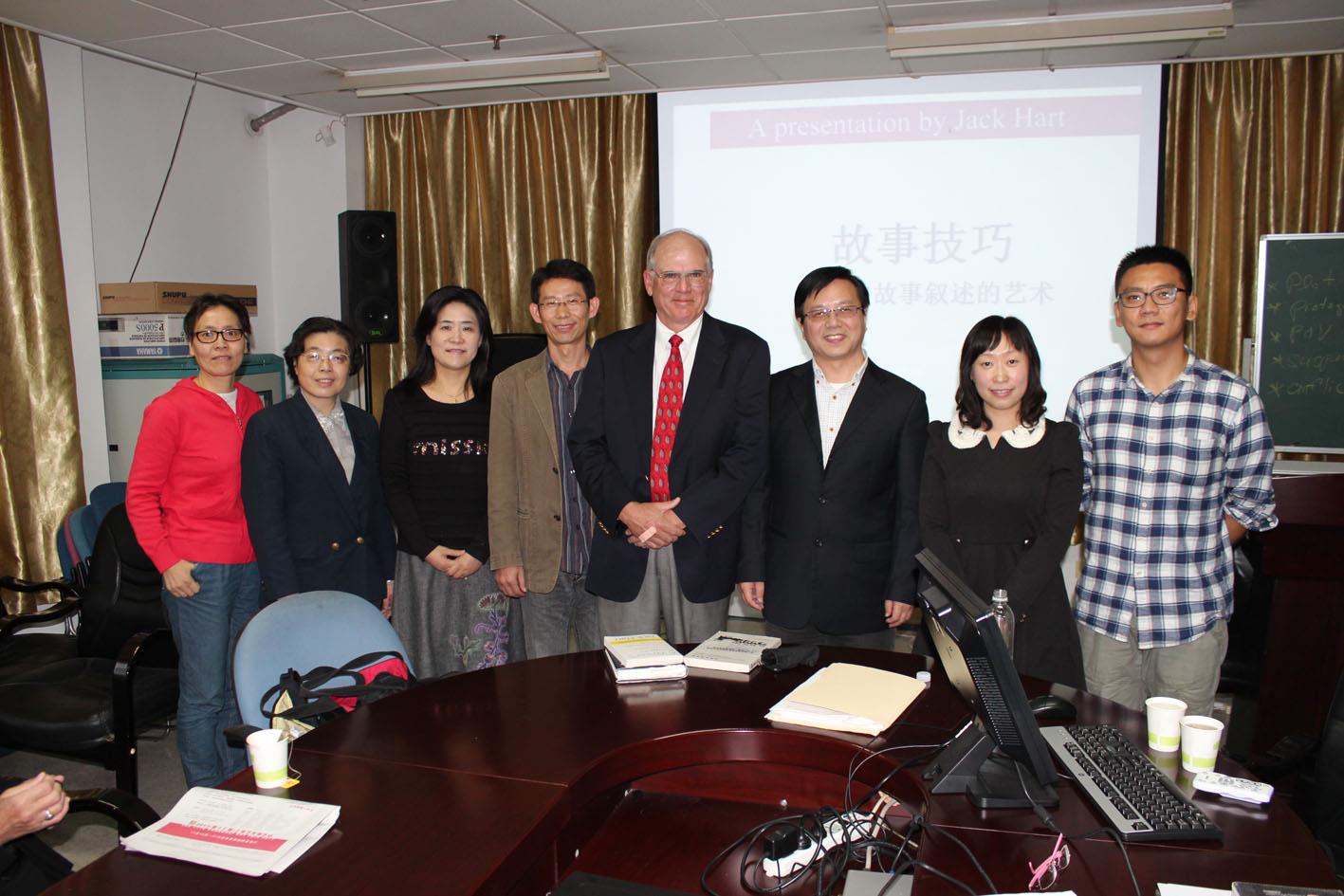2013年10月31日下午,美国著名创意写作教授杰克·哈特应上海大学文学与创意写作研究中心邀请,来上海大学文学院A楼602做“故事——非虚构故事叙述的艺术”的讲座。陈鸣副教授主持了讲座,文创中心教师及全体创意写作专业研究生、写作爱好同学出席。讲座圆满顺利,现场气氛热烈。杰克·哈特教授还从自己的创作经验出发,与上大文创中心师生就叙事性非虚构、纪录片叙事、作家培养途径以及多线性复杂叙事等问题进行了热烈讨论,并“爆料”了多位普利策获奖人的创作过程与背后的故事。非虚构文学写作如今已经成为美国文学的一个重要形式,掌握非虚构文学故事的写作技巧对于创意写作专业学生更是必不可少的,哈特先生的此次讲座让上大文创中心师生都受益匪浅。