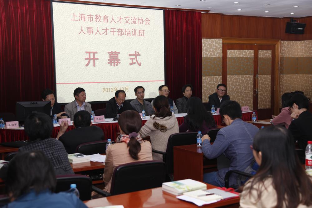 10月25日下午,上海市教育人才交流协会2013年度人事人才干部培训班在上海大学延长校区拉开帷幕。本次培训班由市教育人才交流协会高校分会主办,上海大学人才服务中心承办。市教委人事处处长周景泰、市教育人才交流协会理事长蒋渊龄、市中小学幼儿教师奖励基金会副理事长黄良汉、市教委教育人才交流服务中心主任范文毅、上海大学人事处处长杨国宏、人才服务中心主任兼协会副理事长戴骏豪出席开幕式。开幕式由市教育人才交流协会副理事长、华东政法大学人才交流中心主任高志强主持。全市高教、普教近50家单位80余位人事干部参加了培训班。