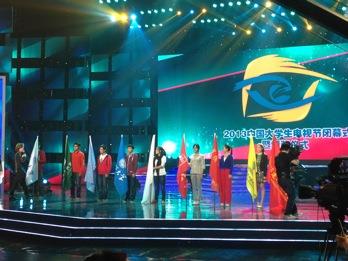 本届中国大学生电视节还特设青奥主题竞赛单元,以“聚焦南京,拥抱青春”为创作主题,选择青奥会承办地南京为拍摄地点进行短片创作。在今年夏天,由我院青年教师陈晓达老师带队,11级MFA邱慧同学、张叶同学,10级MFA吴嘉栋同学代表上海大学参与了此次竞赛单元训练营活动,在比拼中展示我院学子的创作风采。在20日下午江苏卫视颁奖仪式录制现场,邱慧同学手举我院院旗和其余八所高校参赛团队一起接受了电视节组委会的特殊表彰。