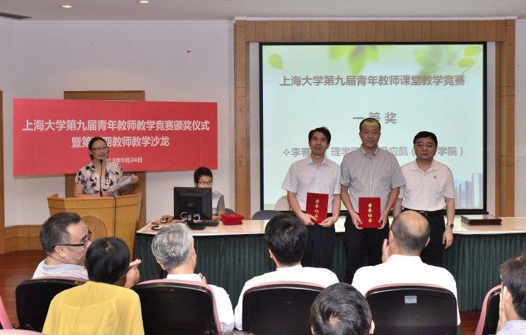 大会伊始,教务处处长万旺根致辞。他希望青年教师在竞赛与沙龙交流中不断积累宝贵的方法与经验,改进教学方法和教学行为,在本学院乃至整个上海大学起到先锋模范作用,他也期待中老年教师能毫无保留地贡献累积了几十年的教学经验,做好传帮带。考评办副主任辛明军介绍了本届青年教师教学竞赛情况。工会主席薛志良宣读了《表彰决定》。热烈的掌声中,李春举、尹应凯等19名获奖青年教师以及荣获组织奖的四个学院教学院长从领导手里接过证书和奖牌。