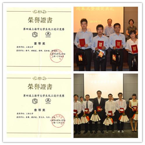 2013年7月15日至16日,由上海市化学化工学会主办、上海师范大学和华东理工大学共同承办的“第四届上海市大学生化工设计竞赛”在上师大徐汇校区成功举行,来自上海交通大学、华东理工大学、上海师范大学、上海应用技术学院、上海电力学院及我校共6所高校20支队伍、100名化工相关专业的本科生经过两天激烈角逐,通过分组赛、决赛答辩最终决出一等奖3名,二等奖5名,三等奖12名。我校大三学生雍平带领的“环五烷--III”团队以总分第一的优异成绩荣获本次大赛一等奖,另一支以奚馨同学为队长的“SHU·光之队”团队也喜获三等奖。