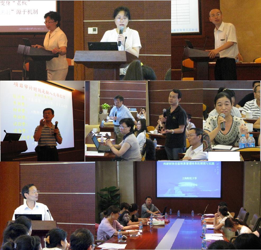 在经验交流阶段,财务处特别邀请了几位老师作介绍。新型显示技术及应用集成实验室李喜峰老师、机自学院陈晓阳老师分别就市科委科研项目和涉军科研项目的预算申报中需要注意的一系列问题,以及如何做好科学和完善的项目预算作了详细的介绍。他们特别就预算中的一些细节作了分析,如项目组成员工作时间计算问题、设备费的价格调研、现有设备的使用和收费标准、自有资金配套、租赁费改造费、材料部件费用、燃料动力费、测试化验加工费、专家咨询费、出版费以及会议和差旅费等等填报中精确预算都作了详尽的讲解。陈晓阳老师还就如何改善科研管理、学校的科研配套制度建设、课题财务经纪人等提出了宝贵的建议。褚全忠老师以理学院为例讲解如何做好二级单位的预算,介绍了学院如何结合学校发展和学院的重点需求来安排各项资金的使用,从而使得资金的安排能够更加准确地支持学院的学科建设和人才培养等工作。