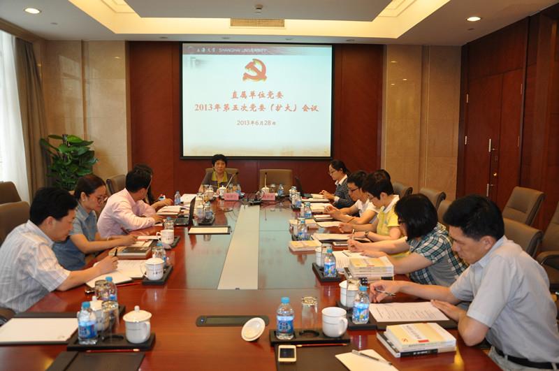 6月28日上午,直属单位党委在校本部乐乎新楼2号楼上善厅召开2013年第五次党委(扩大)会议,通报部署近期工作。会议由直属单位党委书记陆翠兰主持,直属单位党委委员及所属单位负责同志参加了会议。直属单位党委第二期党支部培训班的学员也一同参加了会议。
