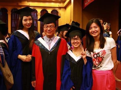 接下来的学位授予仪式可谓是毕业典礼上最激动人心的环节。影视学院党委书记刘日宇首先介绍了2013届研究生的基本情况,影视学院副院长聂伟宣读了研究生毕业生名单。随后,2013届博士、硕士研究生依次上台,台上的各位老师亲切而庄重地为每个人拨穗并颁发学位证书、纪念礼品。