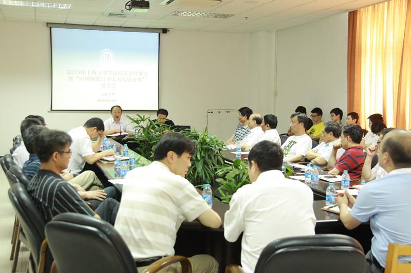 6月16日下午,2013年上海大学宝山校友会理事会暨“中国钢铁行业未来发展形势”报告会在图书馆305会议室召开。上海大学校友会副会长、副校长吴松;宝山校友会会长、宝钢集团资深专家王喆;上海大学党委副书记鲁雄刚、宝山校友会执行副会长、宝钢股份有限公司纪委书记李世平;宝山校友会副会长、宝钢工业技术服务有限公司副总经理解建平;材料科学与工程学院院长张捷宇和部分宝山校友会理事出席会议。