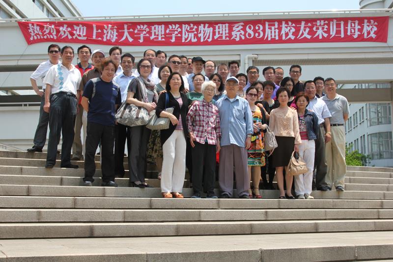 5月25日,阳光明媚,上海大学理学院物理系举行了“83届”校友毕业三十周年校友返校联谊活动。“83”届三个班级三十余名校友、“83”届辅导员沈墀老师、当年三个班级的任课教师代表冯旭老师、史泰华老师、陈锡坤老师欢聚一堂,欢声笑语。物理系党总支书记张义邴到会欢迎各位校友,系主任赵新洛现场介绍了近几年物理系的发展,参会的还有物理系党总支副书记朱绮彪、党支部书记施解龙和部分教师研究生代表。