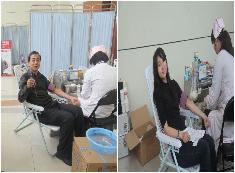 整个献血过程井然有序,同学们相互鼓劲。由于许多同学都是第一次献血,心里难免会感到紧张和害怕。辅导员和各位医生的亲切叮嘱,同学们之间的相互鼓励,志愿者同学贴心的后勤服务,让同学们的紧张情绪得到了很大程度上的缓解。在排队入口处,志愿者负责维持现场秩序,热情地引导献血的同学;在采集血样之后,志愿者耐心引导他们到休息区域;对献完血的同学,老师和同学更是悉心照顾,无微不至,为光荣的无偿献血同学提供贴心的服务。在献血的同学中,也不乏像何文娟、葛宏婧、邬佳乐、王茜这样第二次献血的同学,去年的献血经历让他们深切地体会到了奉献的美好,于是今年依旧毫不犹豫地报了名。