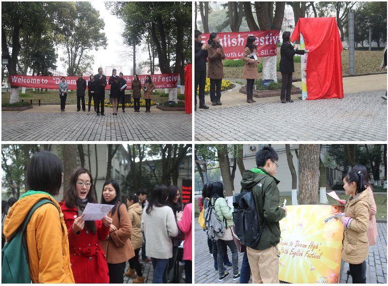 以“Dream High”为主题的第六届上海大学悉尼工商学院英语节开幕式于3月27日中午十一点半在嘉定校区文荟广场隆重开幕,上海大学校长助理、悉尼工商学院院长龚思怡、党委书记李双、党委副书记滕云、副院长吕康娟、副院长马锦华、澳方副院长Matthew Williams、院办主任兼英语教学管理部主任徐晓红老师莅临指导。