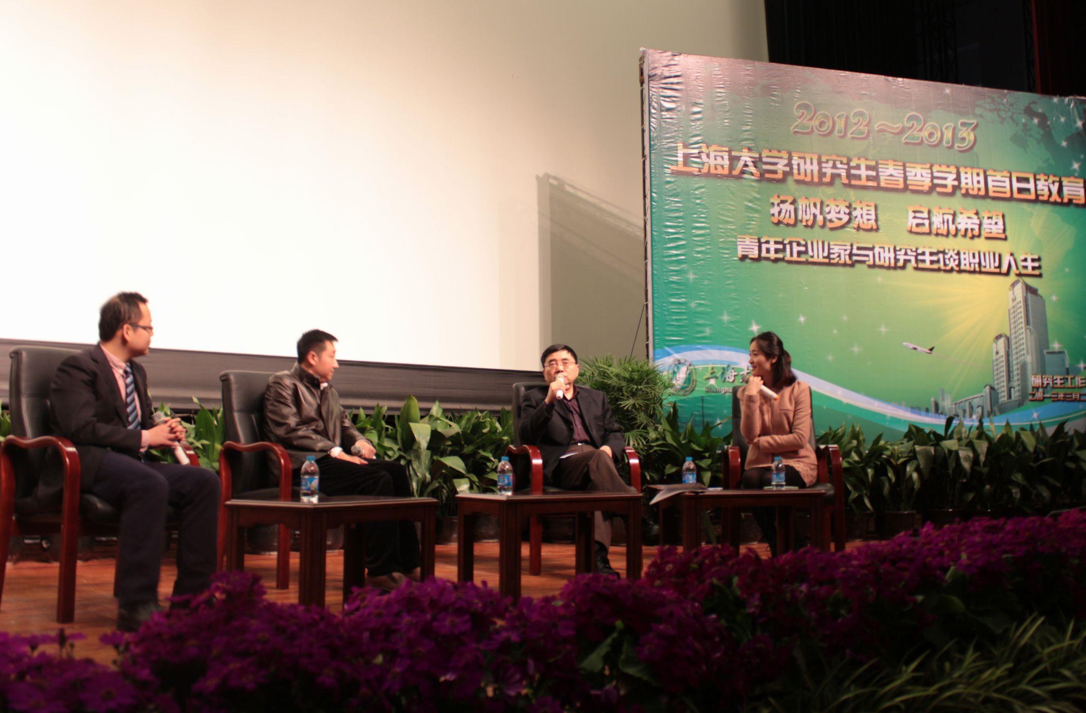 3月22日下午,以“扬帆梦想,启航希望——青年企业家与研究生谈职业人生”为主题的2013年上海大学研究生春季学期首日教育在宝山校区伟长楼举行。我校2012级研究生参加了教育活动。