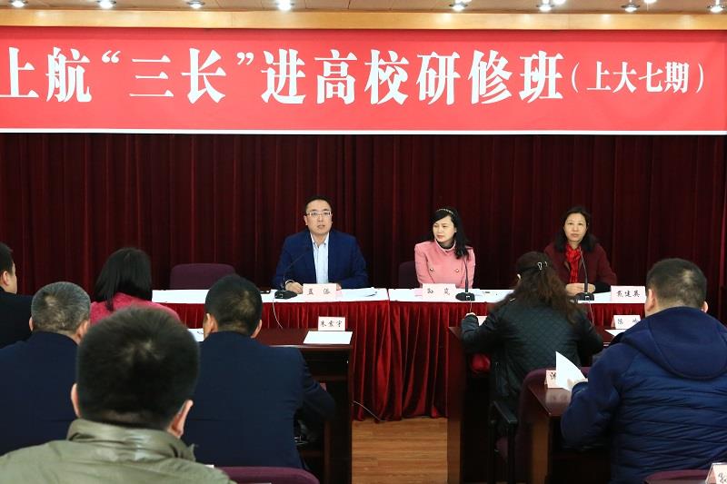上海经济管理中心副主任孟添首先开班致辞,对来自上航以及东航的“三长”们表示热烈欢迎并着重介绍上海大学及上海经济管理中心的最新发展情况。上航工会办公室副主任孙岚女士代表上航党政领导以及工会,对参加此次培训的学员进行了动员,对精心策划的培训课程进行了简要解读,强调培训内容与上航、东航的企业文化及学员的实际需求非常贴合,希望学员珍惜学习机会,并预祝此次培训圆满成功。